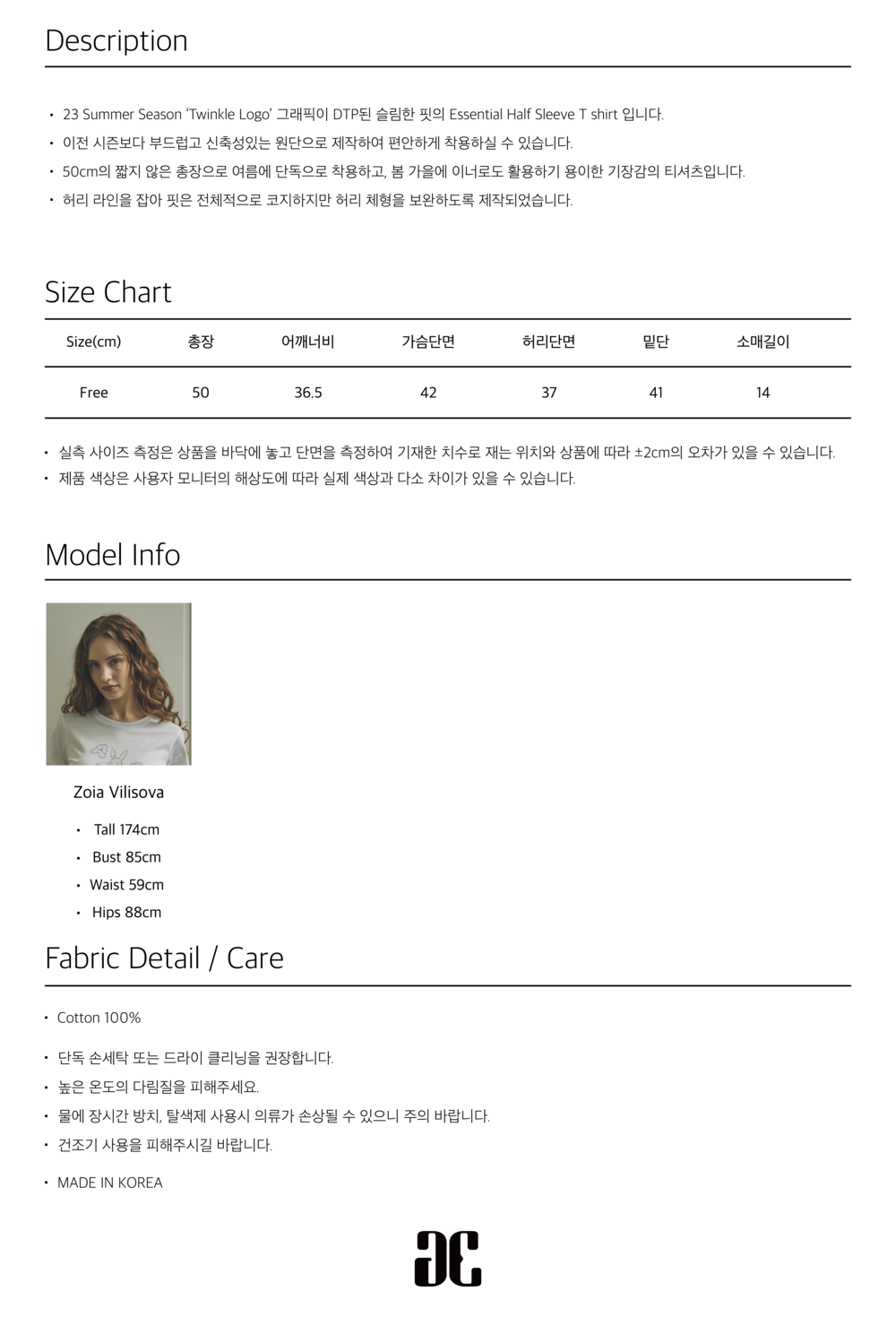 -50cm의 짧지 않은 총장으로 여름에 단독으로 착용하고, 봄 가을에 이너로도 활용하기 용이한 기장감의 티셔츠입니다.